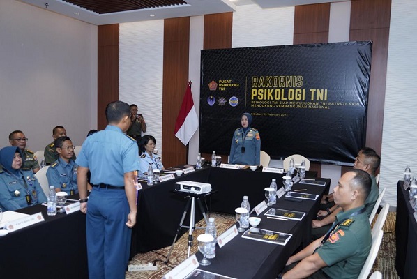 Bekasi, Skalainfo.net| Rapat Koordinasi Teknis Psikologi (Rakornispsi) TNI dipimpin oleh Kepala Pusat Psikologi TNI Laksamana Muda TNI DR. Wiwin D. Handayani, M.Si. dengan mengusung tema “Psikologi TNI Siap Mewujudkan TNI Patriot NKRI Mendukung Pembangunan Nasional”. Kegiatan ini diikuti 22 peserta dari bidang Psikologi di tiap-tiap Angkatan dan Mabes TNI dengan rincian, Mabes TNI (13 peserta), TNI AD (3 peserta), TNI AL (3 peserta) dan TNI AU (3 peserta). Rakornispsi ini berlangsung selama sehari di Avenzel Convention Jl. Raya Kranggan No. 69 Jatisampurna, Cibubur Bekasi, Kamis, 23/2/2023.