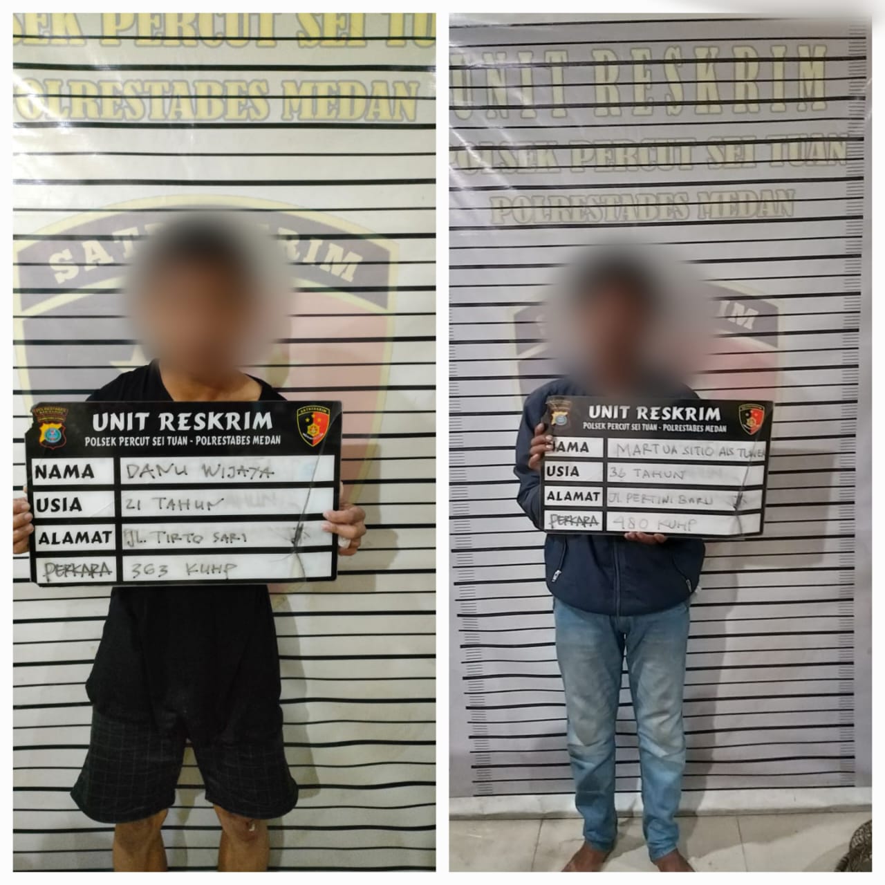 Percut Seituan, skalainfo.net | Dua pria pelaku pencurian spesialis Jalan Tol Badar Selamat, Medan Tembung berhasil diringkus unit reskrim Polsek Percut Sei Tuan.