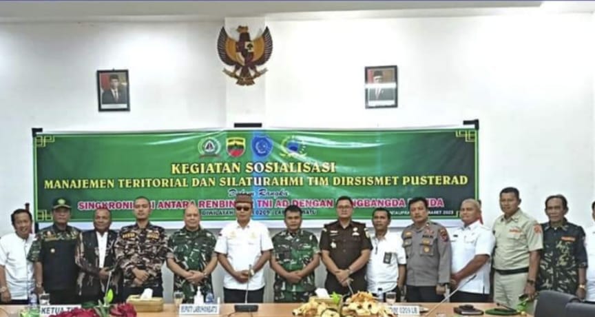 Rantauprapat, Skalainfo.net |Mewakili Bupati Labuhanbatu, Asisten II Bidang Ekonomi Pembangunan Drs. Ikramsyah Putra, MM menghadiri Sosialisasi Manajemen Teritorial dan Silaturahmi Direktur Sistem dan Metode (Dirsismet) Pusat Teritorial Angkatan Darat (Pusterad) dalam rangka Sinkronisasi antara Rebinter TNI AD dengan Rengbangda Pemda yang diselenggarakan oleh Kodim 0209 di Ruang Rapat Bupati atau Command Center Pemkab Labuhanbatu, Rabu (15/3/2023).