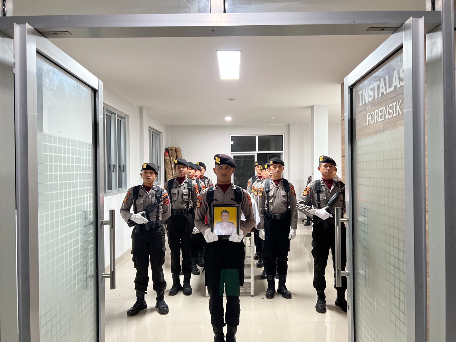 Bertempat di Rumah Sakit (Rumkit) Bhayangkara Polda Gorontalo, upacara berlangsung dengan khidmat dan diiringin dengan penghormatan jenazah.