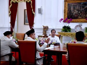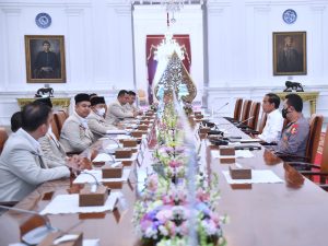 Turut mendampingi Presiden dalam pertemuan tersebut Kapolri Jenderal Polisi Listyo Sigit Prabowo. Sementara itu, tampak hadir dalam pertemuan tersebut antara lain Ketua Umum PP Pemuda Muhammadiyah Dzulfikar Ahmad Tawalla, Sekretaris Jenderal PP Pemuda Muhammadiyah Najih Prasetyo, Bendahara Umum PP Pemuda Muhammadiyah Machendra, dan sejumlah perwakilan PP Pemuda Muhammadiyah lainnya.(MJ/red)