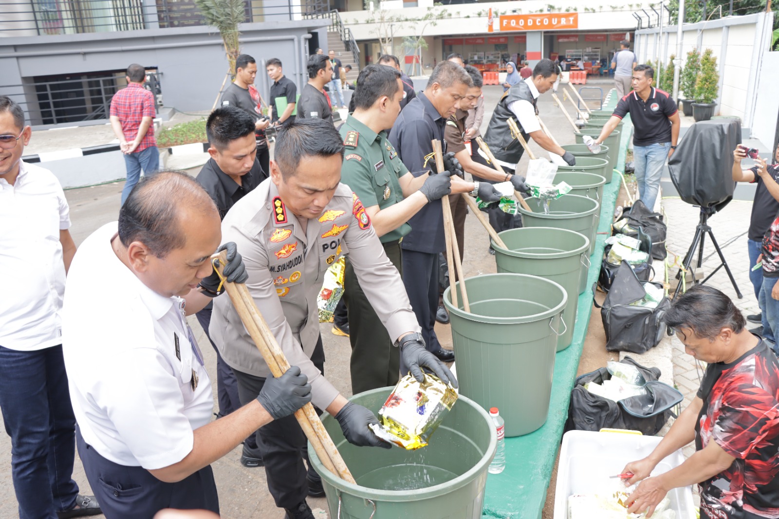 Pemusnahan barang bukti narkoba tersebut dilakukan dengan cara menggunakan mesin insinerator bersuhu tinggi.
