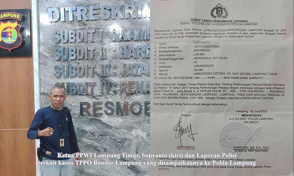 Lampung, skalainfo.net | DPC PPWI Lampung Timur yang diketuai Sopyanto bersama rekan-rekan dari organisasi media lainnya memberikan andil besar dalam penangkapan 4 tersangka jaringan internasional Tindak Pidana Perdagangan Orang (TPPO) di Bandar Lampung. Pasalnya, Polda Lampung dapat membongkar kasus penyelundupan dan penjualan orang itu setelah mendapat informasi dari Sopyanto dan rekan-rekan.