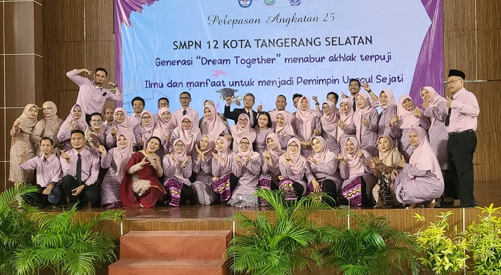 Wisuda sekolah SMP Negeri 12 Kota Tangel dan perpisahan dilakukan hari ini, acara di awali dengan pembacaan ayat suci Al-Quran dan kata sambutan dari kepala sekolah SMP Negeri 12 Tangsel serta dilanjutkan dengan penampilan siswa-siswi dalam acara wisuda.