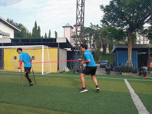 Bergabung dengan Timnas Sepakbola Amputasi merupakan suatu tantangan, khususnya dalam penanganan Fisioterapi sebelum atau setelah cidera pada atlit sepak bola amputasi. Kasus yang paling sering dialami oleh para pemain timnas adalah cidera pada sprain ankle, ACL, wrist, elbow dan shoulder.