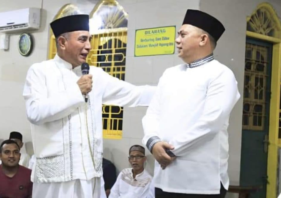Gubsu yang mengenakan sarung dan baju Koko berwarna putih tiba di Masjid Agung Rantauprapat sekitar pukul 04.30 WIB, dan disambut oleh Bupati Labuhanbatu dr.H.Erik Adtrada Ritonga,MKM dan warga Labuhanbatu.