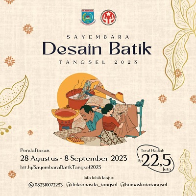 Tangsel, Skalainfo.net| Pemerintah Kota melalui Dewan Kerajinan Nasional Daerah (Dekranasda) Kota Tangerang Selatan menggelar sayembara desain batik Tangsel 2023. Dengan total hadiah mencapai 22,5 juta rupiah, diharapkan didapat karya terbaik yang dapat mewarnai dan merefleksikan semangat serta identitas Kota Tangerang Selatan.