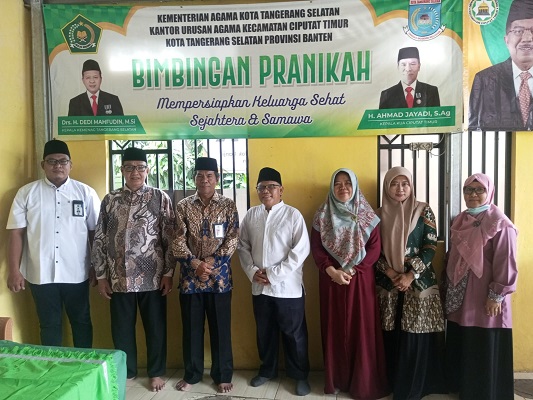 Rangkaian acara pembinaan pranikah pun berjalan dengan baik dan lancar dan diakhiri dengan pembacaan Do’a yang dipimpin langsung oleh Kepala KUA Kecamatan Ciputat Timur H. Ahmad Jayadi, S.Ag dan bersalam-salaman serta foto bersama. (Red/Andi/SM).