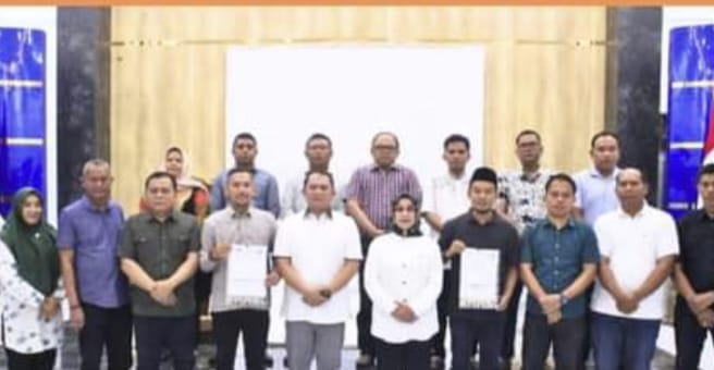 Penandatanganan naskah perjanjian hibah Daerah Antara pemerintah Kabupaten Labuhanbatu dengan Komisi Pemilihan Umum Kabupaten Labuhanbatu tentang dana hibah penyelenggaraan pemilukada serentak Tahun 2024 di Kabupaten Labuhanbatu.