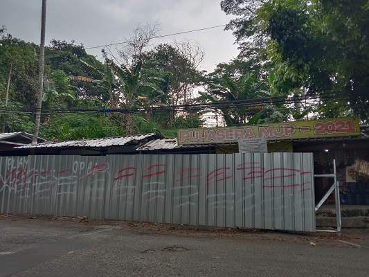 “Melihat aksi sekelompok orang dari tanah milik adat A/N. Naim Naiman semakin tidak wajar, sehingga para warga dan pedagang kios pujasera Lereng Indah RW. 07 berang atas tindakan pemagaran kios pujasera milik warga sekitar yang dilakukan secara semena-mena tersebut”.