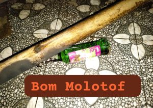 Beruntung bom molotof yang di lemparkan di dekat sebuah mobil dapat segera dipadamkan dengan menggunakan air.