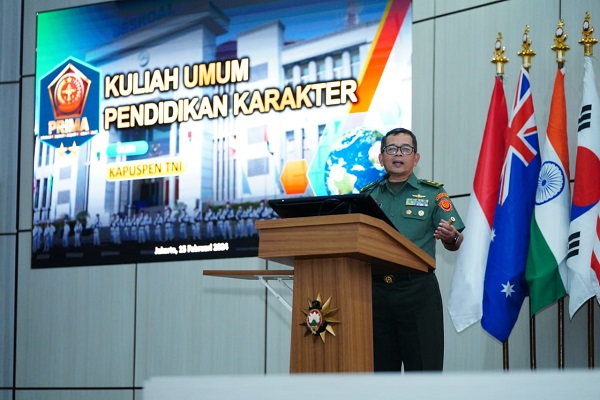 Jakarta, Skalainfo.net| Pendidikan karakter adalah bentuk penyempurnaan diri tiap individu secara konsisten dan melatih kemampuan diri untuk menentukan kemajuan generasi bangsa dimasa yang akan datang. Hal tersebut disampaikan oleh Kapuspen TNI Mayjen TNI Dr. Nugraha Gumilar, M.Sc., ketika memberikan kuliah umum dihadapan 183 Siswa Dikreg Seskoal Angkatan 62, bertempat di Aula Samadikun Seskoal, Jakarta Selatan, Kamis, (15/2/2024).