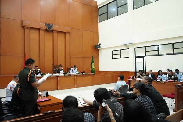 Sidang dipimpin oleh Hakim Ketua Kolonel Chk Adeng, S.Ag.,S.H., Hakim Anggota Kolonel Kum Siti Mulyaningsih, S.H.,M.H., dan Kolonel Chk Arwin Makal, S.H.,M.H., sebagai Panitera pengganti Mayor Chk Dani Subroto, S.H.,M.H., dengan Oditur Brigjen TNI Safrin Rachman.