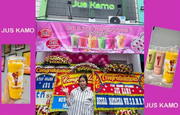 Grand Opening JUS KAMO kali ini memberikan promo untuk (All Menu) sejak tanggal 06 sampai 31 Desember 2024, dengan harga relative dan terjangkau bagi kaum Gen-Z dan millennial. Berawal dari kesukaannya dengan minuman yang manis, sehingga dianugerahi untuk membuka tempat varian minuman dan makanan sehat, berikut wawancara awak media ini dengan owner JUS KAMO Kota Tangsel.