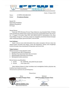 Jakarta, Skalainfo.net| Hari ini, Kamis, 16 Januari 2025, beredar luas sebuah surat menggunakan Kop Surat PPWI palsu, mengatasnamakan organisasi Persatuan Pewarta Warga Indonesia (PPWI), yang ditujukan kepada Kepala Dinas Pendidikan Kabupaten Pangandaran, tertarikh 15 Januari 2025. Surat tersebut pada intinya meminta bantuan dana sebesar Rp. 25.000.000,- (dua puluh lima juta rupiah) kepada Kepala Dinas Pendidikan Kabupaten Pangandaran. Dalam surat itu, tertulis pembuat dan/atau pengirim surat adalah Ketua PPWI Perwakilan Priangan Timur, H. Asep M. Kurnia, S.Sos dari media Patroli Indonesia, dan Sekretaris PPWI Perwakilan Priangan Timur, Ade Fadil dari media Metro Pagi.