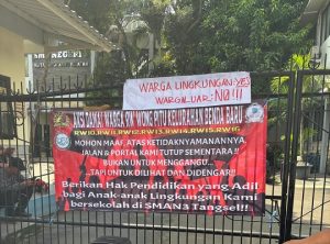 Tak ayal lagi, kekesalan warga memuncak dan akhirnya menutup jalan yang menuju kesekolahan SMAN 3 Tangsel, hal itu dilakukan bentuk dari kekecewaan warga sekitar atas penuturan kepala sekolah SMAN 3 Tangsel seperti tidak memihak kepada warga lingkungan saat berdialog dengan warga sekitarnya.