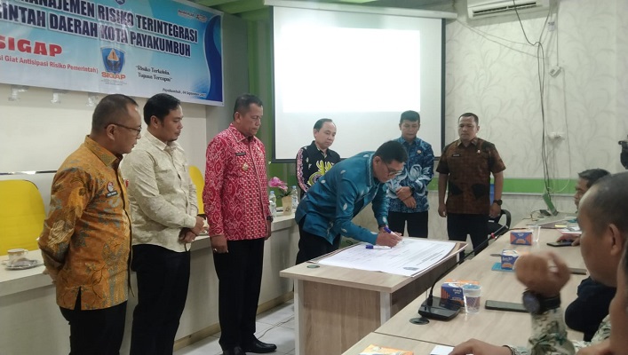 Acara launching dan sosialisasi diakhiri dengan Penandatanganan Komitmen Bersama Pelaksanaan Strategi Penerapan Sistem Manajemen Risiko Terintegrasi oleh 31 Kepala OPD, disaksikan Wakil Wali Kota Payakumbuh, Asisten dan Staf Ahli Pemko Payakumbuh. (Red/Muji/Team).