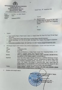 Terkait adanya pelaporan polisi berdasarkan nomor: LP/131/B/IX/2025/Sek Ciptim/Res Tangsel/Pmj tanggal 02 September 2025 oleh saudari Lisnawati terhadap bapak Murdih dengan perkara Memasuki Pekarangan Tanpa Izin sebagaimana dimaksud dalam Pasal. 167 KUHPidana di Polsek Ciputat Timur Kota Tangsel.