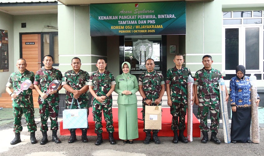 Tangerang, Skalainfo.net| Keluarga besar Korem 052/Wijayakrama menggelar acara syukuran kenaikan pangkat prajurit dan PNS periode 1 Oktober 2025 bertempat di Makorem 052/Wkr, Kelapa Dua, Kabupaten Tangerang. Rabu, 01/10/2025.