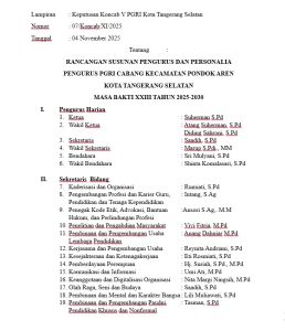 Pola kerja organisasi PGRI di kepengurusan PGRI Kec. Pondok Aren tetap berpatokan dengan mengikuti program kerja PGRI Tangsel yang akan berkolaborasi dengan kepengurusan lama untuk kemajuan bersama, terangnya.