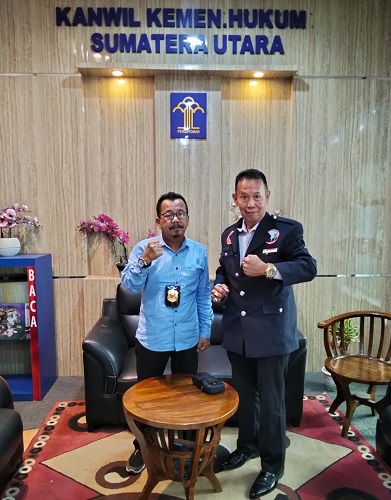 Giat konsolidasi serta moment kunjungan Ketum DPP Projamin ke Sumatera Utara bersama Tim Divkemsos dan didampingi oleh ketua DPC BIN Projamin Kota Medan, Legiman Pranata silaturahmi menghadap ke Kanwil Kemenhukum Sumut dan Kanwil Itjen Lapas Medan. Dalam rangka kolaborasi menjalin Kemitraan BIN Projamin dengan Negara di Medan Sumut.