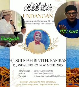 Tangsel, Skalainfo.net| Kematian merupakan perpisahan antara ruh dengan raga. Kematian akan mengantarkan manusia kepada kehidupan yang abadi. Kematian juga akan memusnahkan segala nikmat yang manusia peroleh dan yang dinikmati selama di dunia. Hal ini disampaikan oleh pihak keluarga pada acara tahlilan memanjatkan doa terhadap Almarhum Hajjah Sulmah Binti H. Sambas, mengenang malam empat puluh hari Almarhum di semayamkan. Senin, 05/01/2026.
